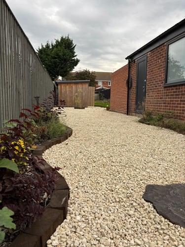 Outside, the property boasts a large garage—perfect for storage, a workshop, or secure parking—as well as a fully landscaped garden designed for easy maintenance and outdoor enjoyment.
